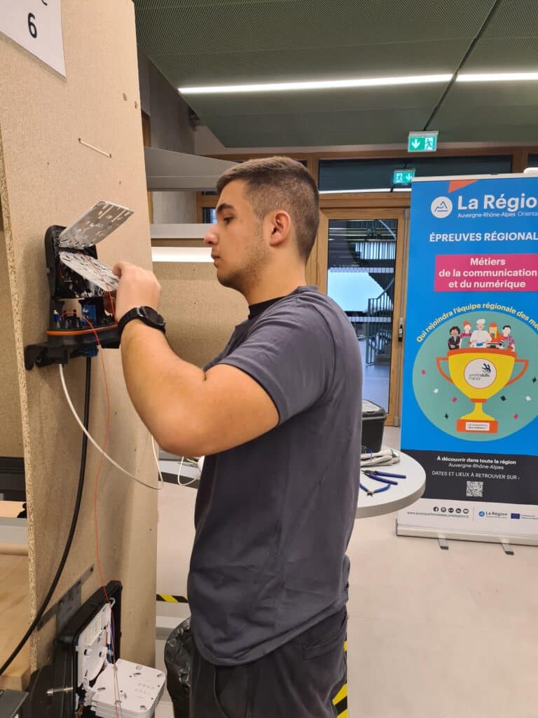 Ce lundi, Folan a eu le plaisir d’assister aux sélections régionales de WorldSkills France au Lycée Polyvalent de la Côtière à La Boisse (Ain). Ce concours national met en lumière les métiers techniques et valorise le savoir-faire des jeunes talents. L’épreuve dédiée au câblage des réseaux très haut débit a réuni huit étudiants prometteurs issus de divers lycées de la région Auvergne-Rhône-Alpes.
